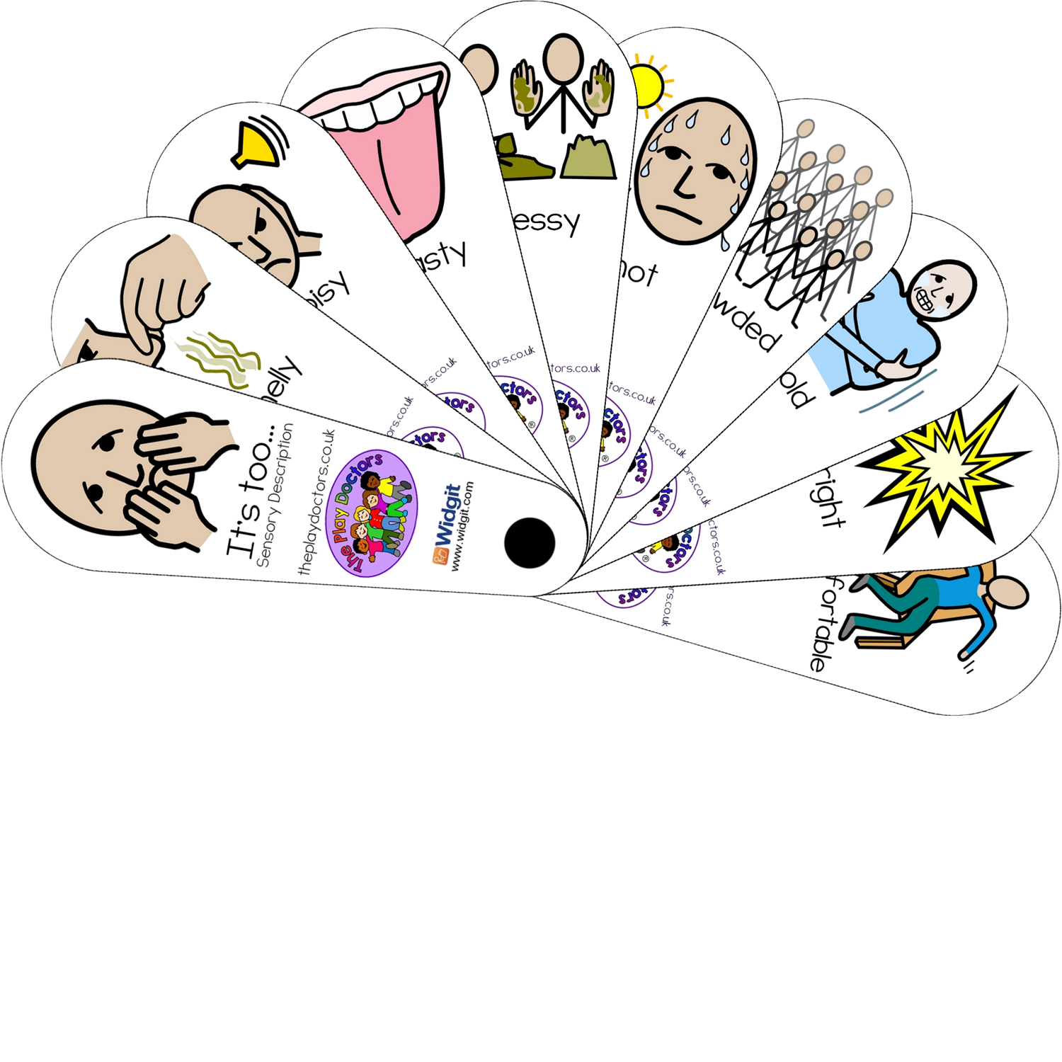 This visual communication fan is used to support individuals to communicate how they are feeling in relation to sensory overload and communicate their sensitivities.